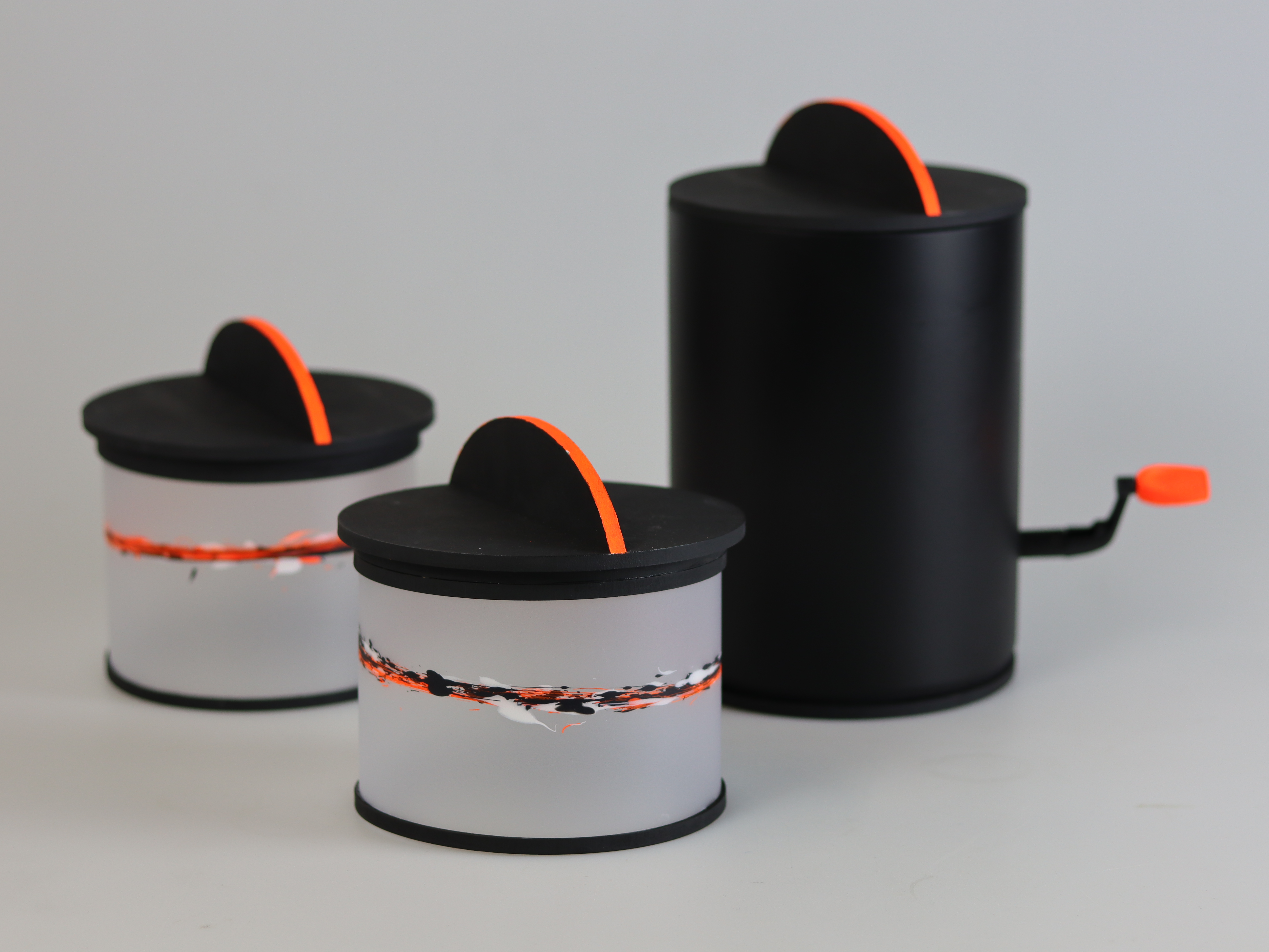 We started with the creation of a waking-up experience focusing on natural elements, such as water. In the following step, we took the extreme character “fisher” as he is surrounded by water. Furthermore, we created an iteration in which water flows through a clock. We were then advised to choose one element and abstract this further. Therefore, we investigated the tools of a fisher man. We were most interested in the reel of a fisher rod, because of its pleasant movement and interaction. We chose the reel as element and combined it with paint to make the traces of the interaction visible, covered in the aesthetic of the Koi carp and fishing tools.