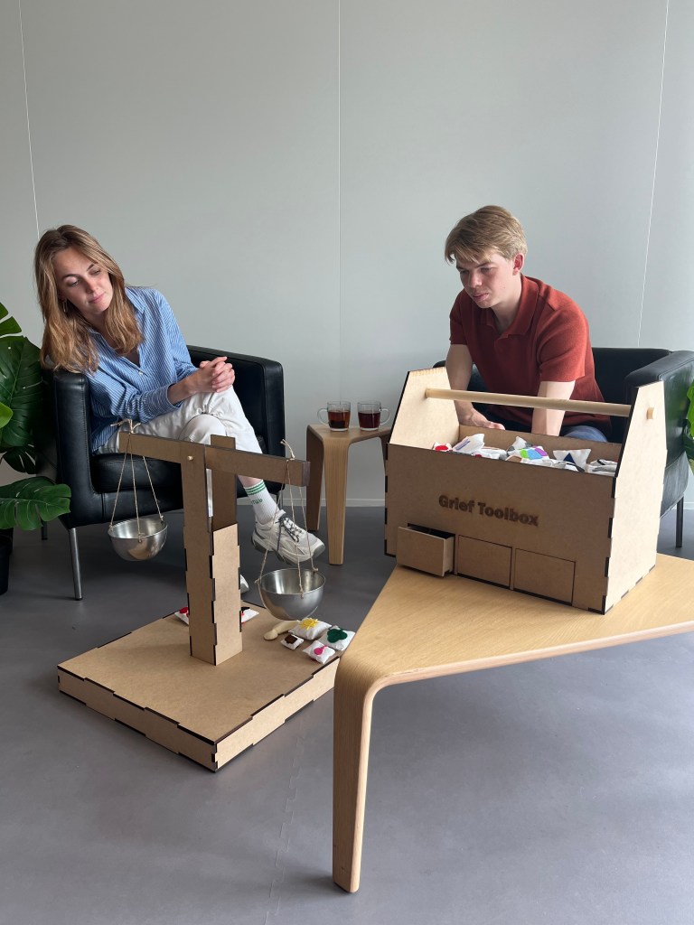 Extensive benchmarking was done during the final bachelor project. First I looked at previous projects on bereavement design. This was mainly done to gain inspiration and build on their key learning points. Later in the project I benchmarked existing tools and techniques used in grief therapy. This was done to get inspired, but also to understand what is already out there. The advantages and disadvantages of each tool became clear. This made it possible to find points of improvement, which I incorporated into my project. Finally after validating the concept with therapists some market limitations and opportunities became clear. This helped me reflect on my overall design and business opportunities.