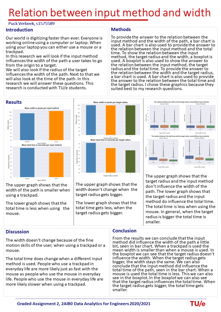 We will also look if the radius of the target influences the width of the path. Next to that we will also look at the time of the path. In this research we will answer these questions. This research is conducted with TU/e students.