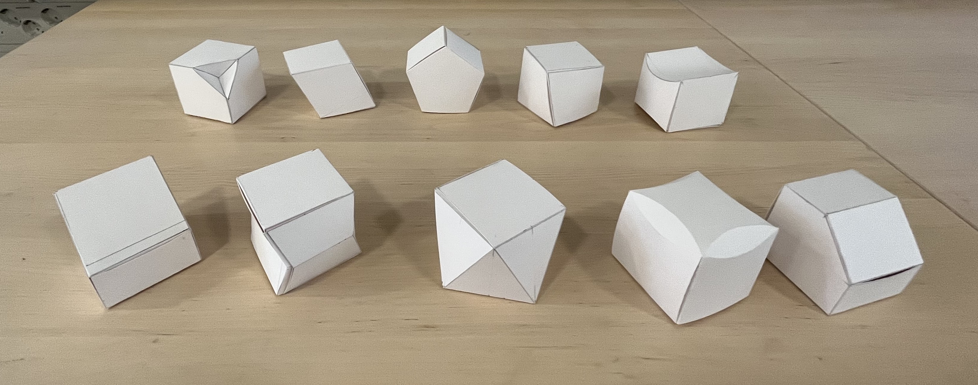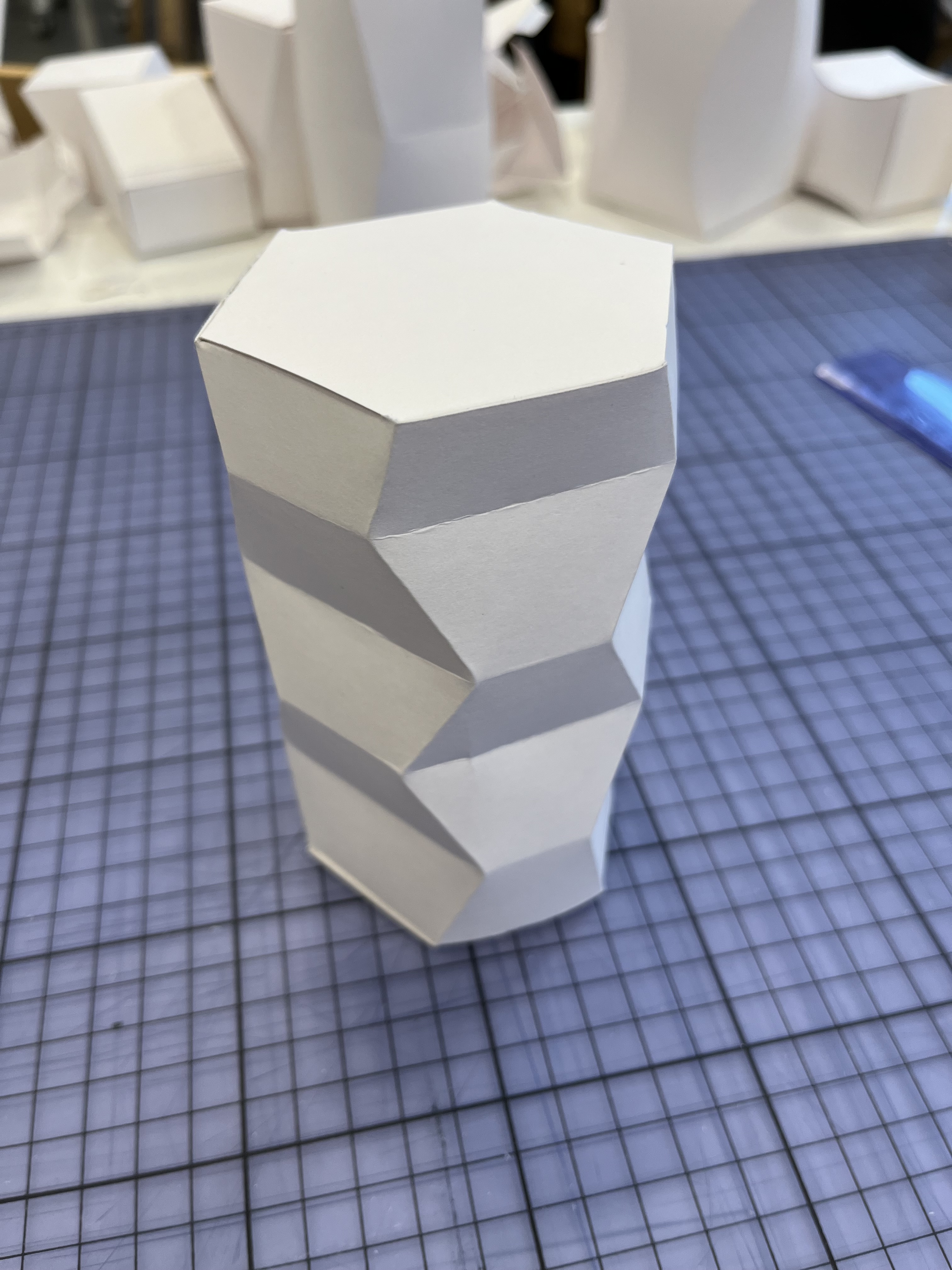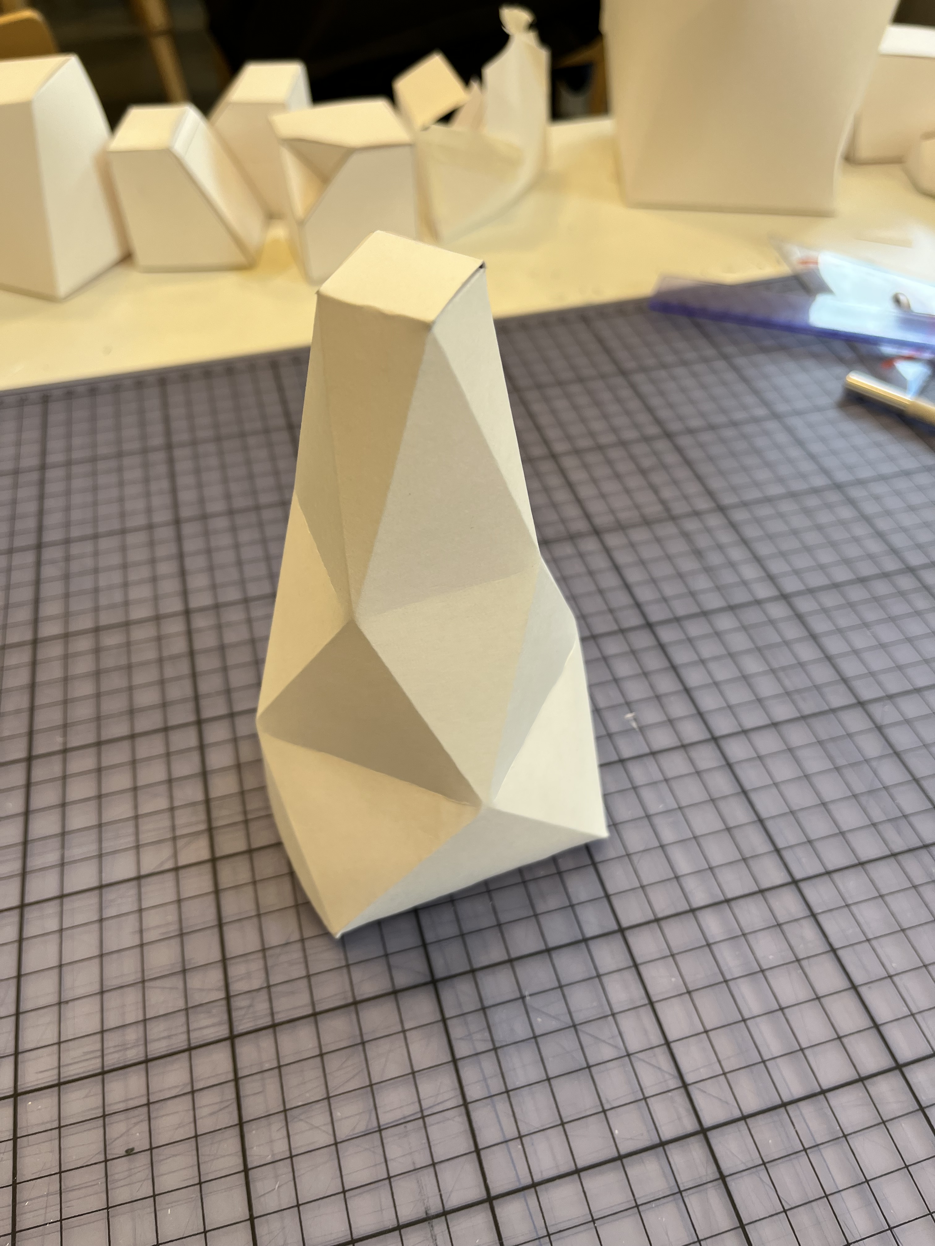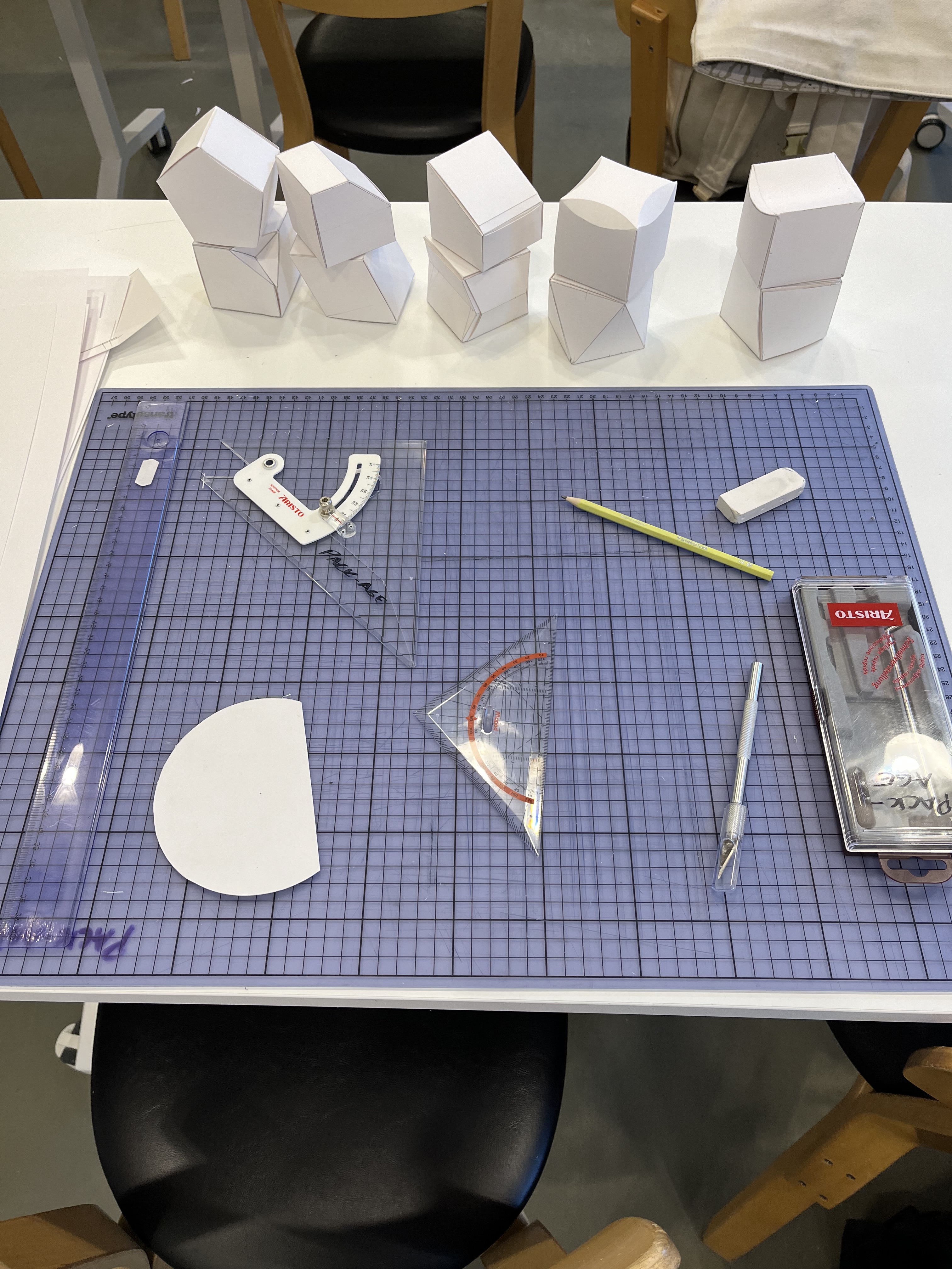 I learned step-by-step a system for constructing very strong, glueless ‘nets’, which enable constructing any 3D form made of polygons (a ‘net’ is the shape of the card when a 3D package is unfolded flat).